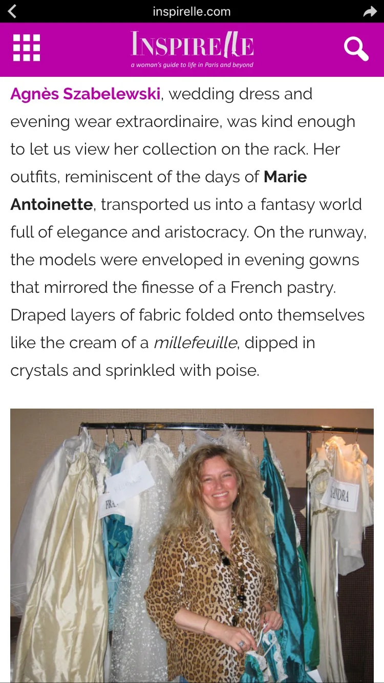 Below : an article on Inspirelle.com about Fashion Extreme Paris 3, the fashion show for the "coeur à coeur" foundation where Agnes has shown her new collection 2017-18